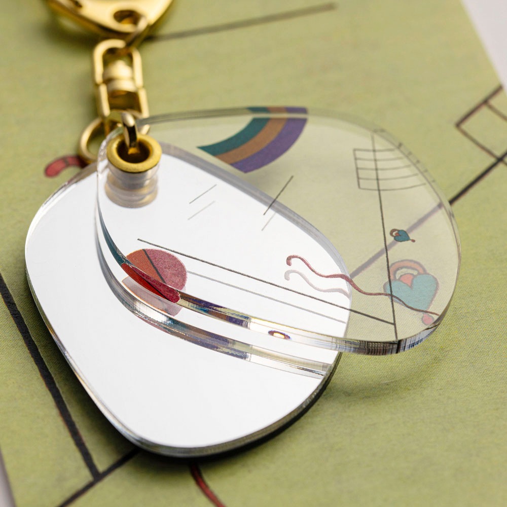 ヴァシリー・カンディンスキー《二本の線》に描かれたモティーフを、絵画のように浮遊感のあるデザインで表現しました。