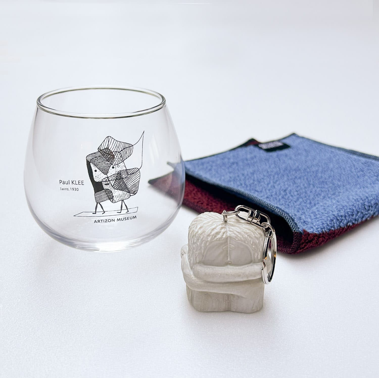 人気のブランクーシ《接吻》キーホルダーとパウル・クレー《双子》のゆらゆらグラスを組み合わせたペアギフトもおすすめです。